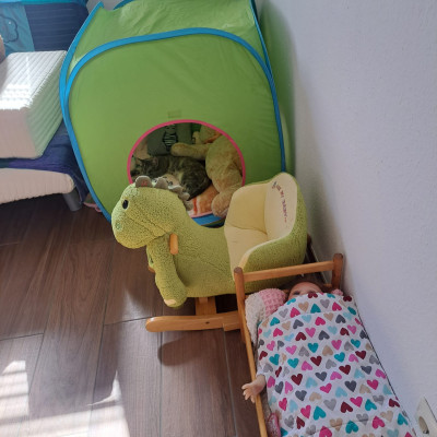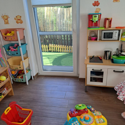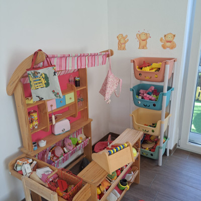 Für die Tageskinder steht ein liebevoll gestalteter, separater Raum zur Verfügung – ein Ort zum Spielen, Essen, Entdecken und Toben. Der angrenzende Freisitz bietet zusätzlich frische Luft und Bewegungsfreiheit im geschützten Außenbereich.