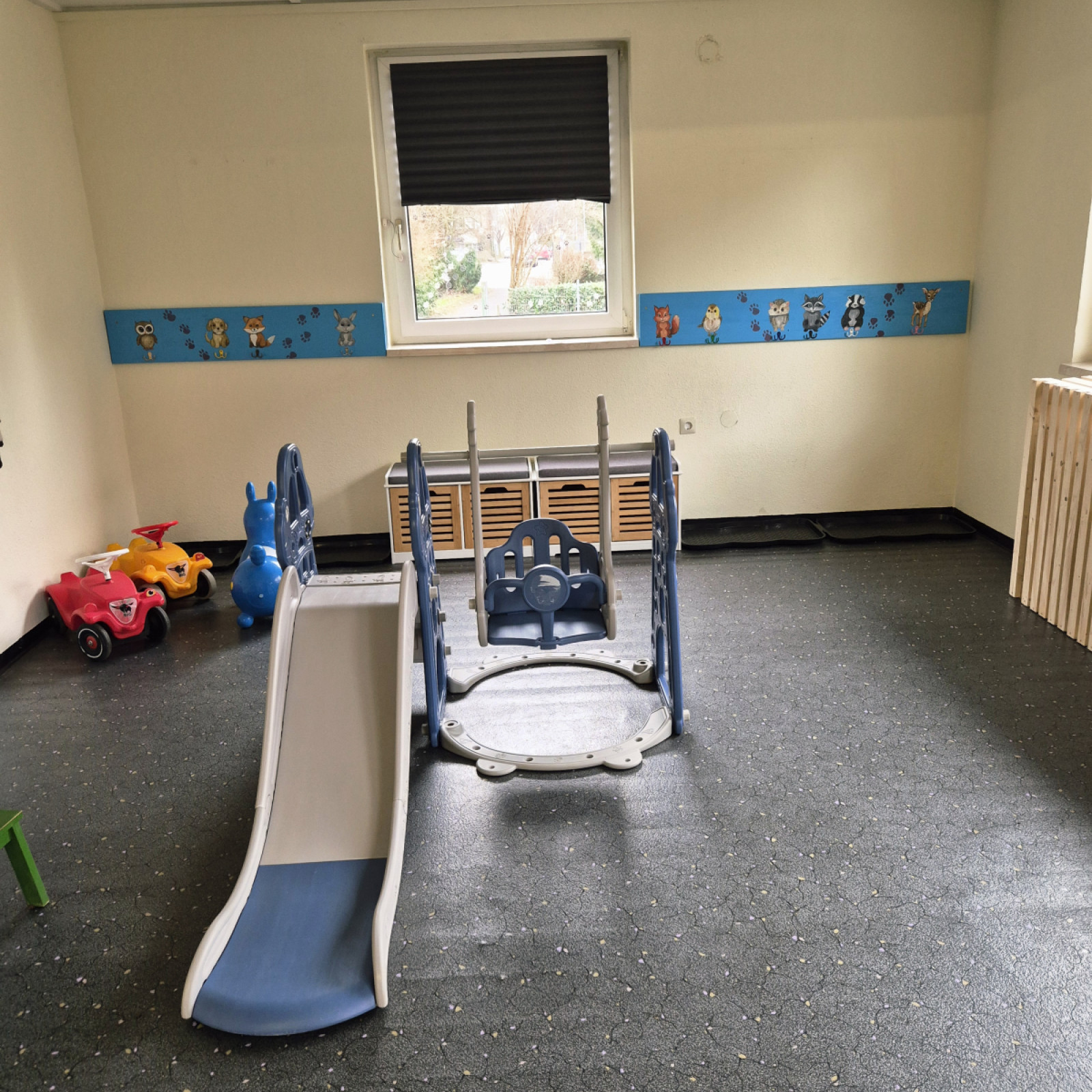 Ebenfalls in kurzer Entfernung liegt ein Spielplatz, der gezielt in unseren Tagesablauf eingebunden wird. Die Kinder können dort klettern, rutschen, schaukeln und soziale Erfahrungen im Spiel mit anderen Kindern sammeln.